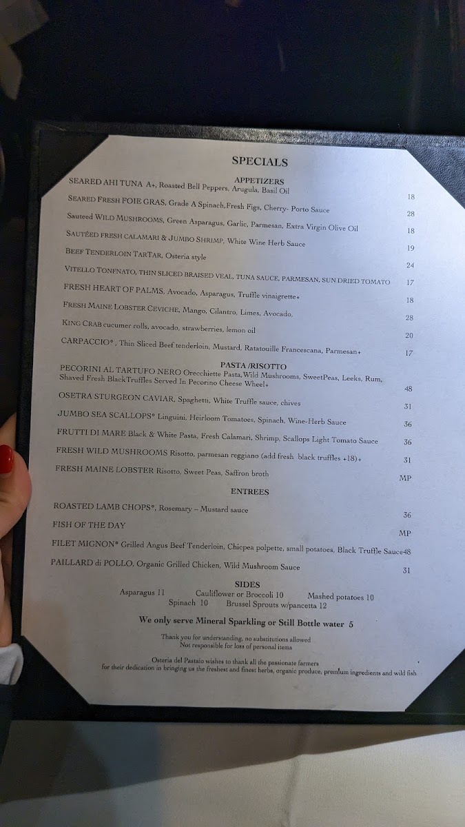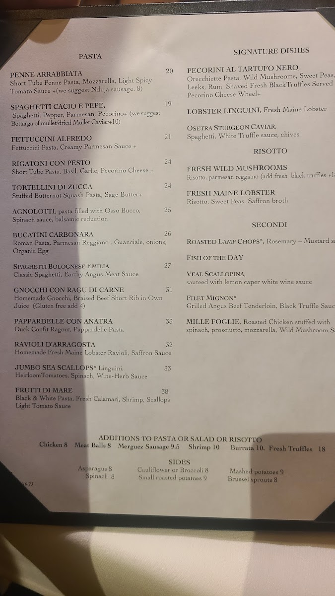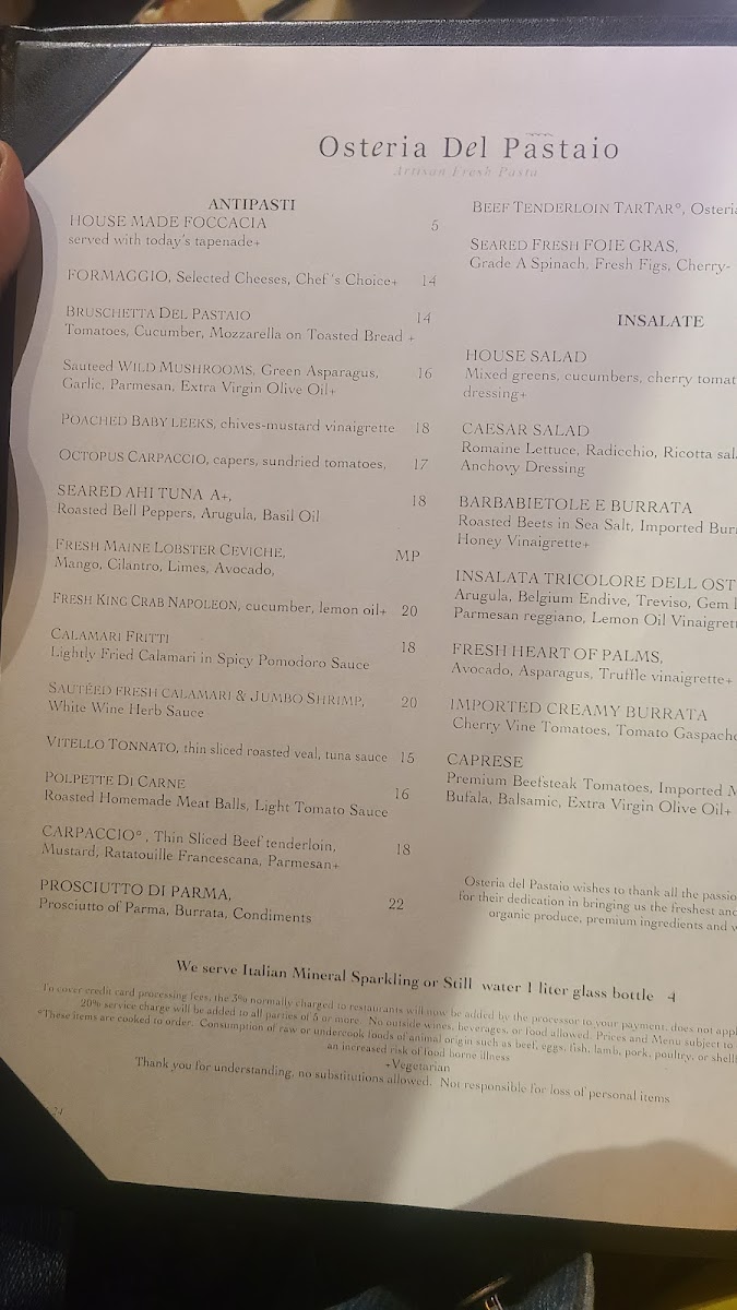 - Antipasta: Start your meal with highlights such as the Bruschetta Del Pastaio, featuring fresh tomatoes and mozzarella on toasted bread, or indulge in the Fresh Maine Lobster Ceviche paired with mango and cilantro.