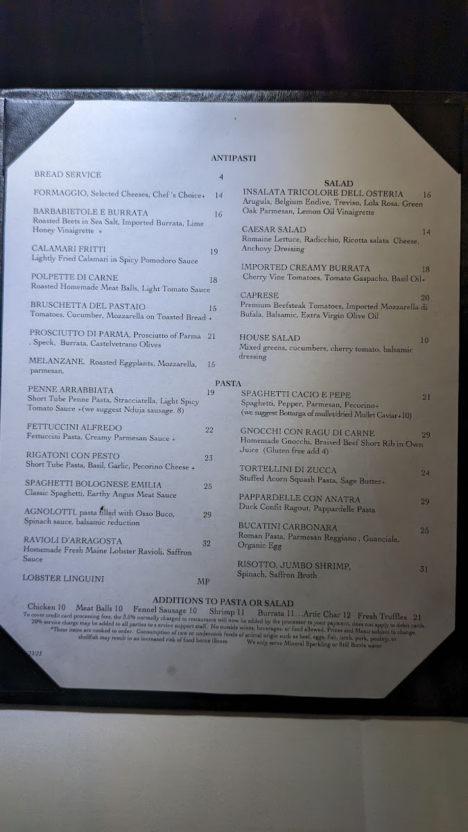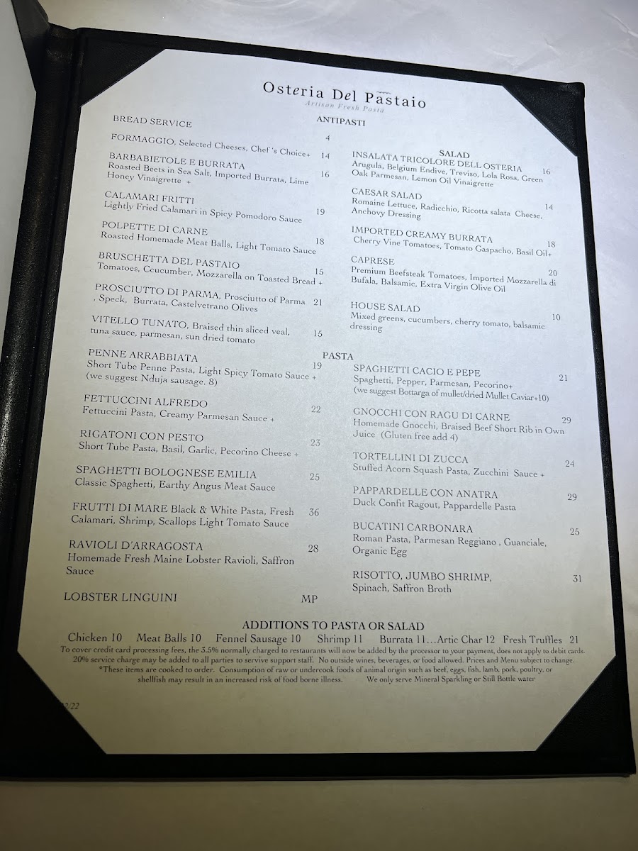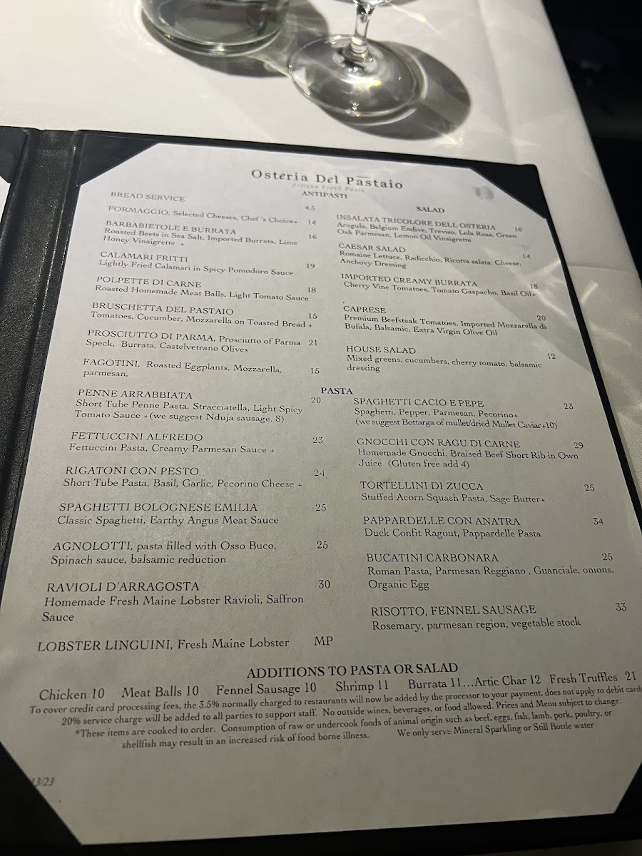 Osteria del Pastaio Menu